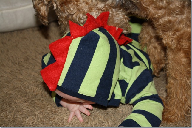 10:30 Finish the costume—the bitty boy can be a dinosaur.